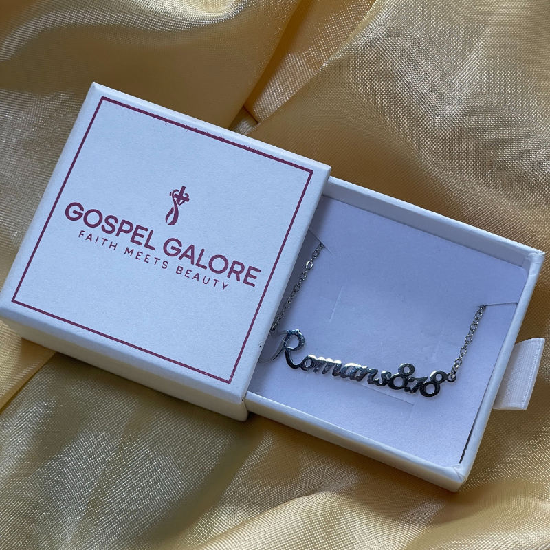 Elegant and meaningful, our Silver Bible-Versed Necklaces bring a modern touch to a timeless message. Each necklace is inscribed with your favourite Bible verse, making it a personal reminder of God's Word wherever you go. Crafted in high-quality silver stainless steel, this necklace offers a minimalist look that pairs effortlessly with any outfit, perfect for everyday wear or meaningful gifting. Choose from our standard Bible verse range or personalise it with any of the 31,000+ verses in Scripture. A beautiful gift for Christian women, ideal for baptisms, birthdays, Christmas, or simply sharing faith in style.