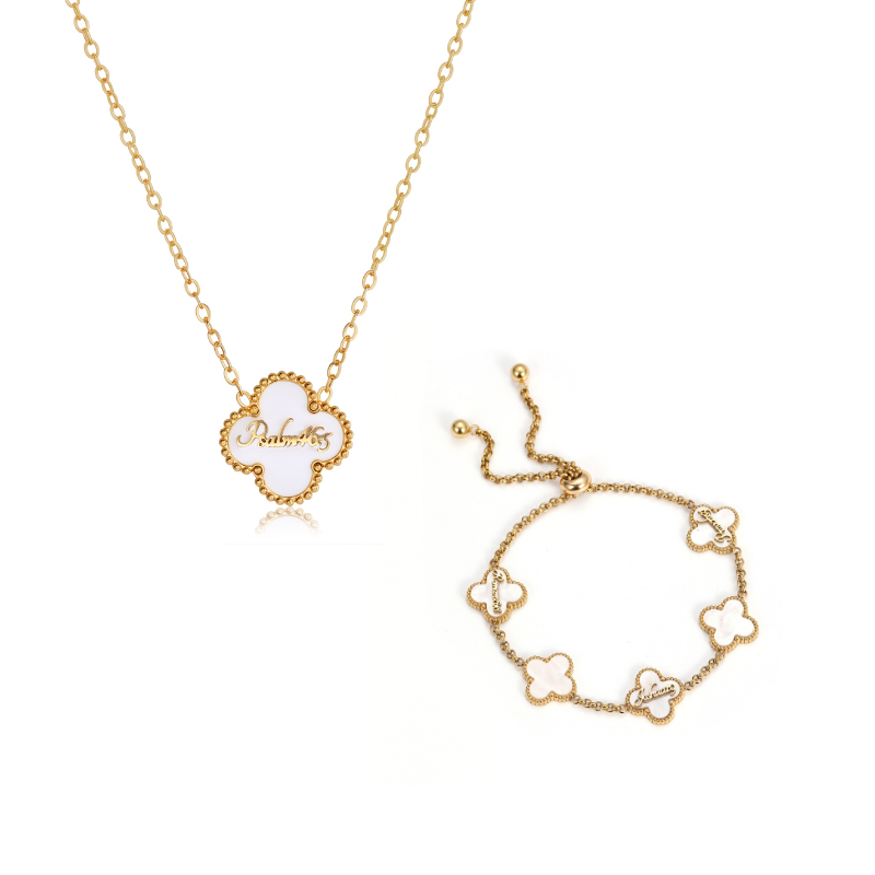 Clover Neckace and Clover Bracelet Bundle (Gold)
