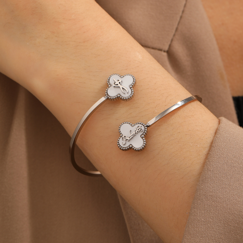 Name Bracelet and Clover Bangle and Clover Bracelet bundle (Silver)