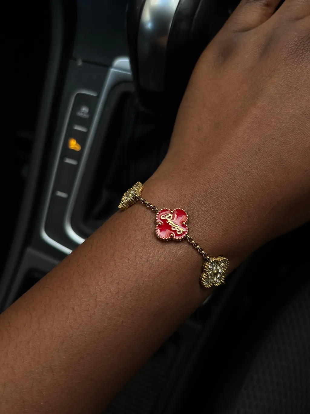 Gold Clover Red Clover Bible Verse Valentine Bracelet for women#finish_red